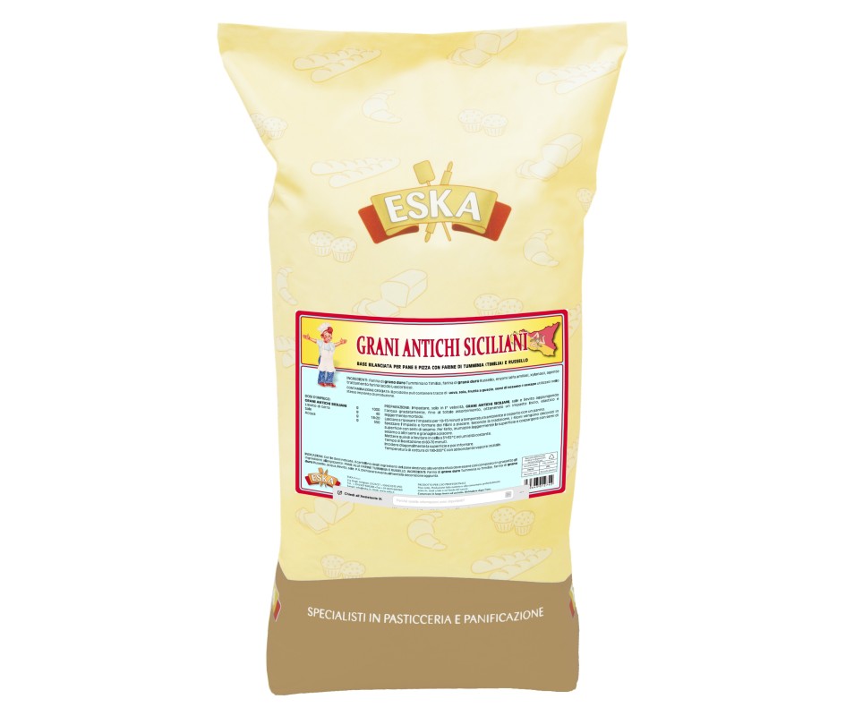 GRANI ANTICHI SICILIANIè una farina speciale a base di ingredienti biologici che ripropone antichi sapori e tradizioni, con farine di grano duro presenti da tempi immemorabili in Sicilia. Si tratta di due varietà di grano quasi estinte ma recentemente riscoperte per la loro elevata digeribilità e le loro particolari note aromatiche erbose.