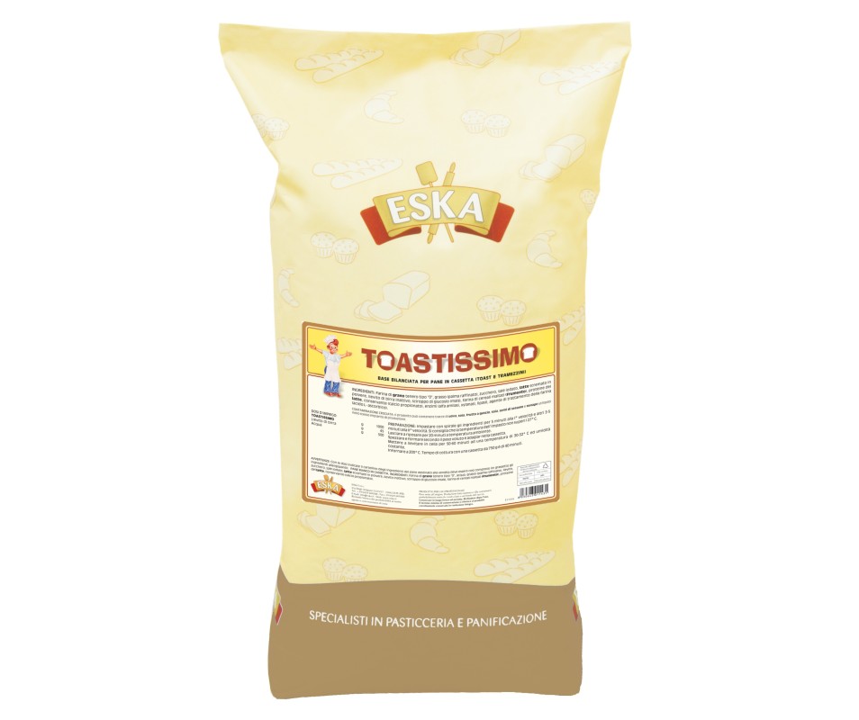 tag: TOASTISSIMO, base per pane in cassetta, base per toast, base per tramezzini, preparato per pan carré, mix per pane morbido, farina tipo 0, proteine del latte, ESKA, Dolci & Pani